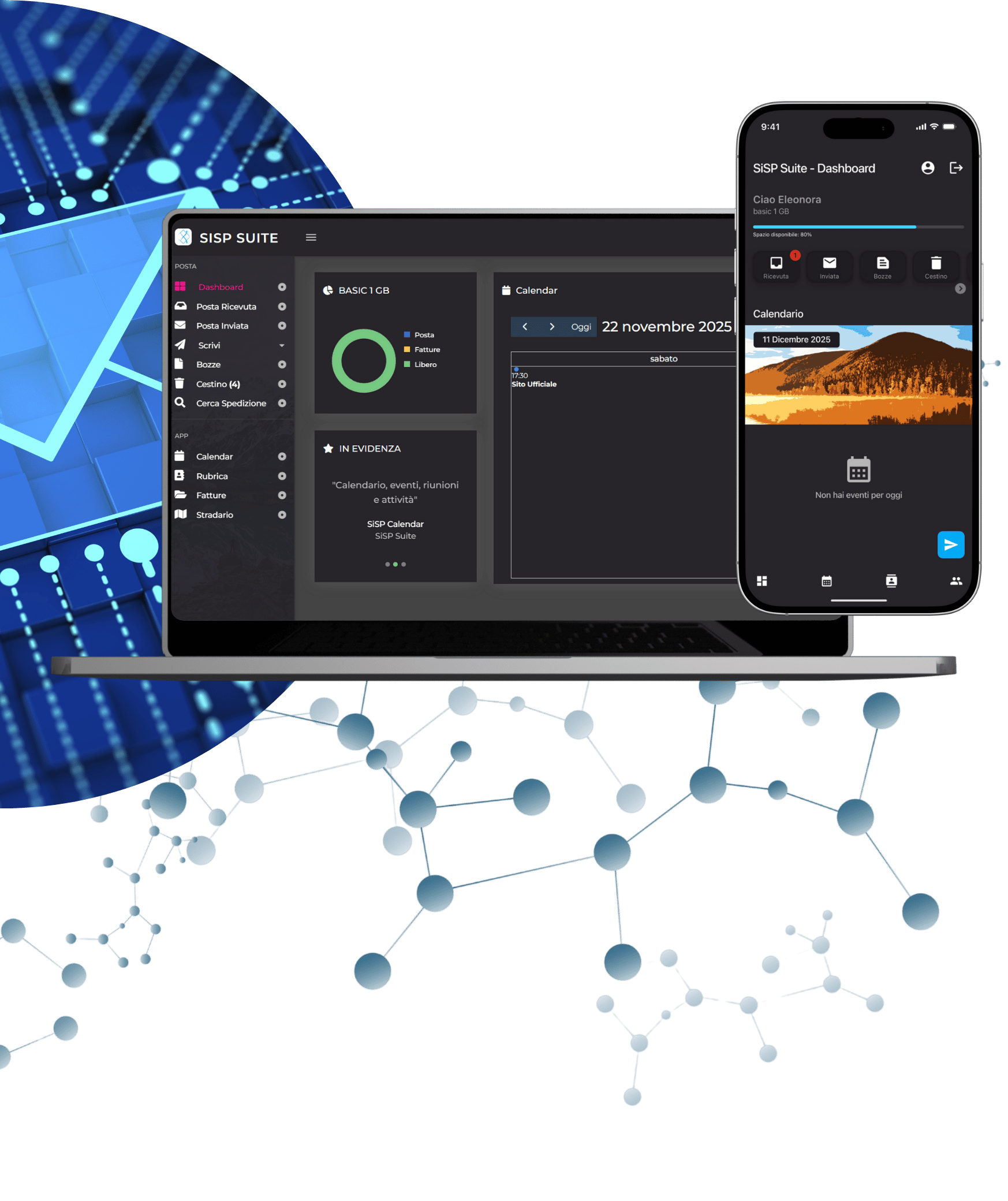 Con SiSP Suite gestire la posta è semplice e sicuro: invii, ricevi e organizzi tutto in un unico ambiente. Che tu sia un privato, un professionista o un’azienda, hai sempre a disposizione uno spazio integrato dove comunicazioni, documenti e appuntamenti si incontrano.